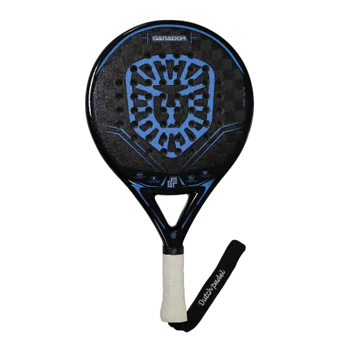 Dit Dutch Padel Ganador Blue V2 racket komt uit de elite racketlijn. De rackets in deze lijn hebben een ronde racketvorm. Het racket is ge-update met een ‘schuurpapier’ oppervlakte in het racketblad. Hierdoor kan er nog optimaler met effect gespeeld kan worden. Er wordt gebruikt gemaakt van 1 laag 18K carbon en 1 laag fiberglas, in combinatie met het frame van 100% carbon en de medium hightech EVA zorgt dit voor een zeer sterk, comfortabel en allround racket. Tot slot is het gewicht van het racket 350 – 365 gram. Al met al een ideaal racket voor een brede groep spelers.
